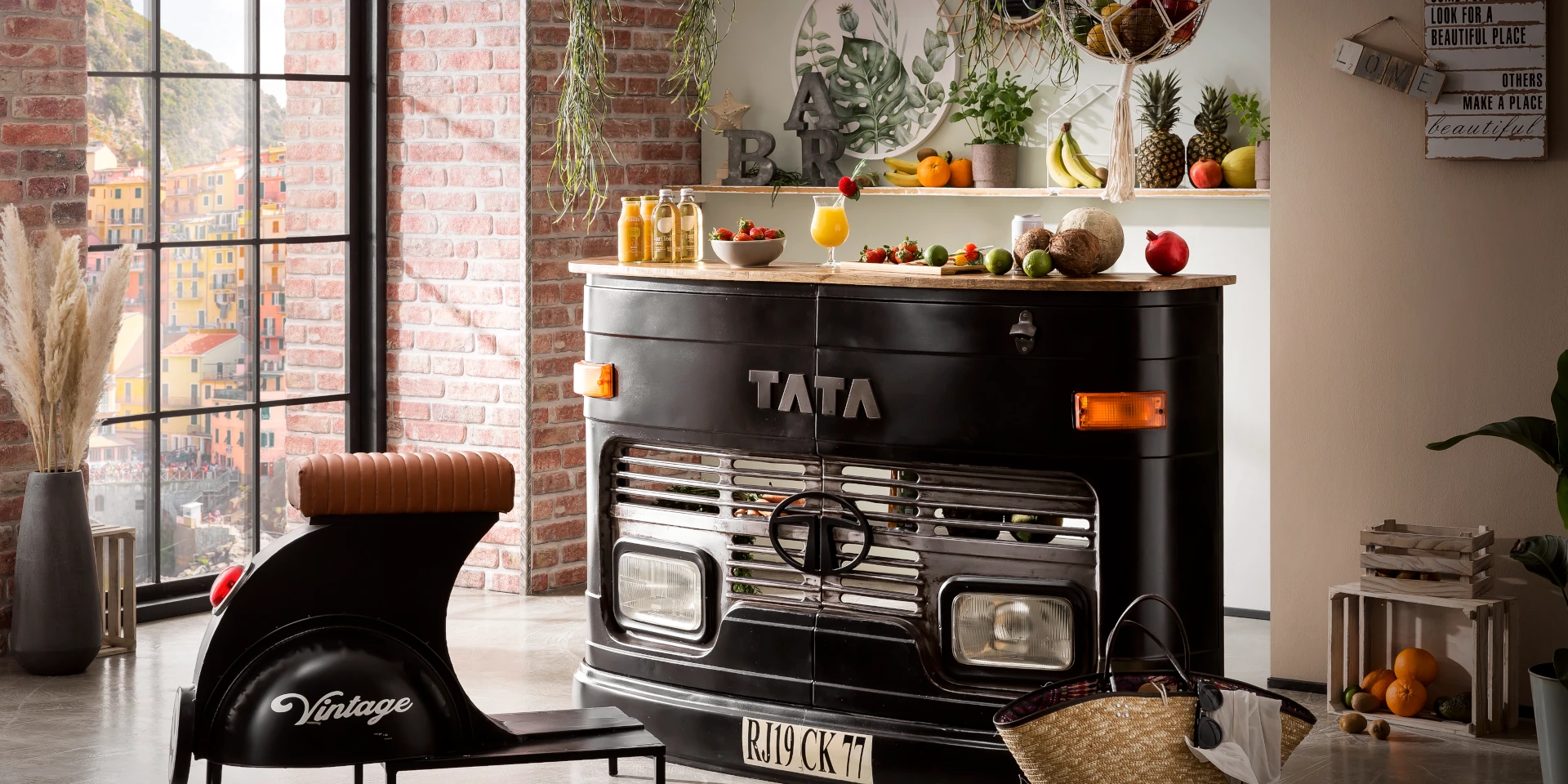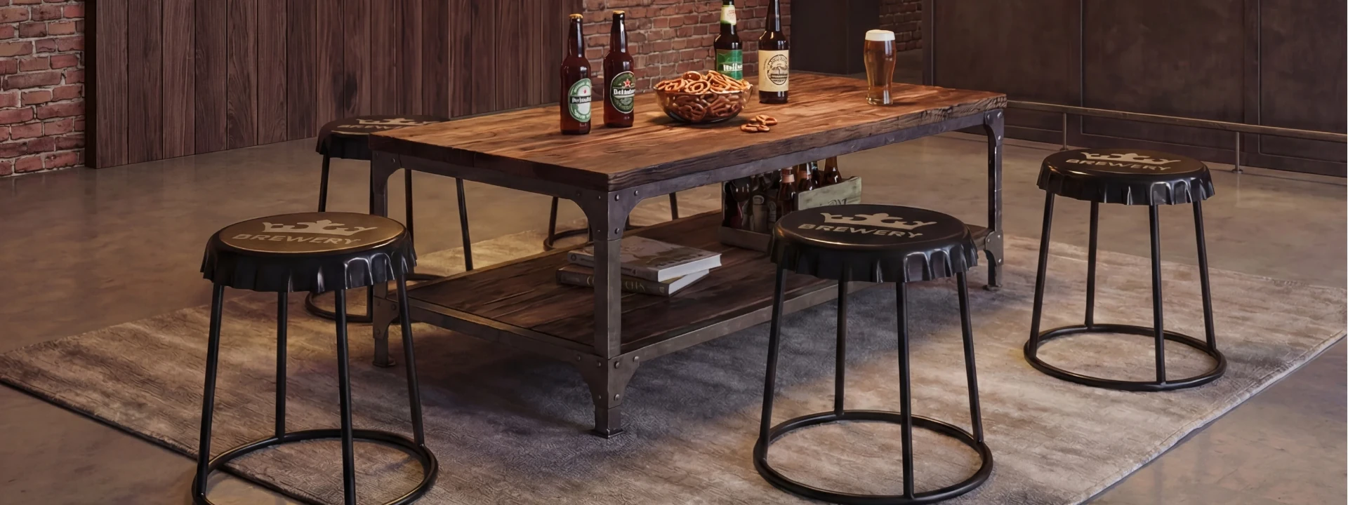 Besonders stolz sind wir auf unser „Bikes & Bars“-Konzept – eine unserer verrücktesten Ideen, die zeigt, wie kreativ Upcycling sein kann. Aus alten Motorrädern, Autos und anderen Fahrzeugteilen entstehen bei uns einzigartige Barmöbel, die jeder Party den gewissen Kick geben. Stell dir einen Bartisch mit einer echten Motorradfront oder ein Barregal aus Ölfässern vor – Möbel, die garantiert für Gesprächsstoff sorgen und dein Zuhause in einen urban-rustikalen Treffpunkt verwandeln. Diese innovativen Stücke sind mehr als nur Möbel: Sie sind Kunstwerke, die den Geist des Industrial Style verkörpern und deinem Raum das gewisse Etwas verleihen. Hier geht's zu unseren Bikes & Bars.
